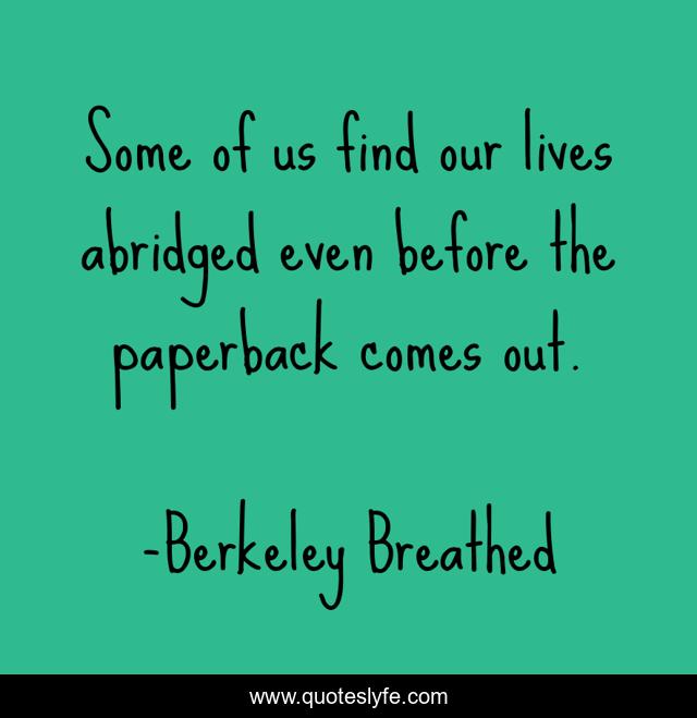 This page presents the quote "Some of us find our lives abridged even before the paperback comes out.". Author of this quote is Berkeley Breathed. This quote is about life, books,.