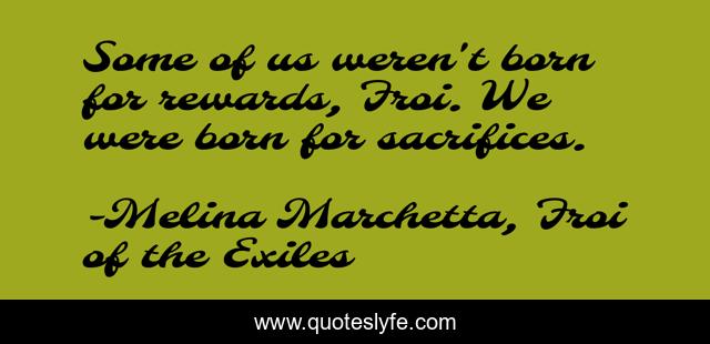This page presents the quote "Some of us weren't born for rewards, Froi. We were born for sacrifices.". Author of this quote is Melina Marchetta, Froi of the Exiles. This quote is about froi, sacrifices, life, rewards, tariq,.