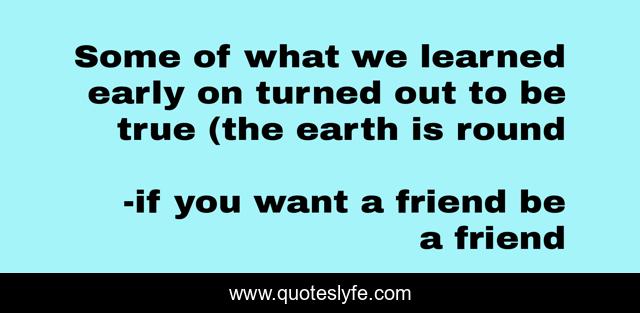 This page presents the quote "Some of what we learned early on turned out to be true (the earth is round". Author of this quote is if you want a friend be a friend. .