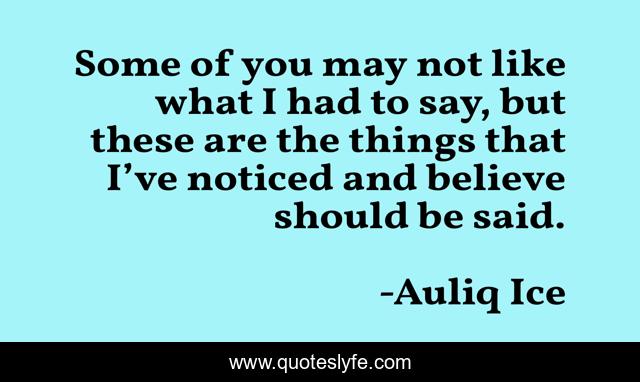 This page presents the quote "Some of you may not like what I had to say, but these are the things that I’ve noticed and believe should be said.". Author of this quote is Auliq Ice. This quote is about confidence, truth-is-hard, seek-truth, courage, truth, facts,.