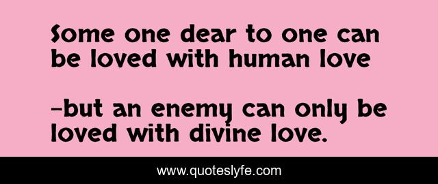 "but an enemy can only be loved with divine love. Quotes." Quoteslyfe.com, 2025. Sat. 06 Dec. 2025. <https://www.quoteslyfe.com/quote/Some-one-dear-to-one-can-be-164781>.