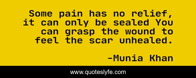 This page presents the quote "Some pain has no relief, it can only be sealed You can grasp the wound to feel the scar unhealed.". Author of this quote is Munia Khan. This quote is about unhealed, melancholy, pain, feel, agony, heal, wound, grief, grasp,.