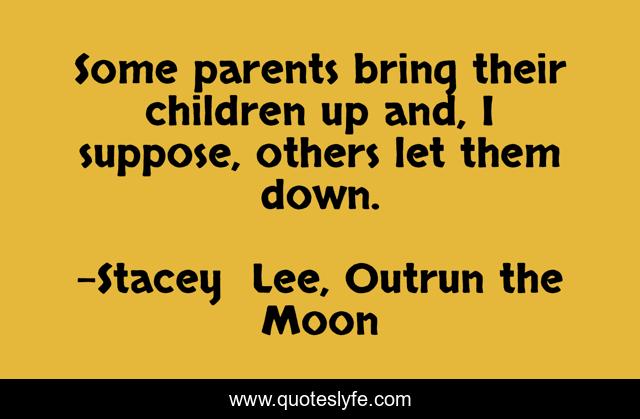 This page presents the quote "Some parents bring their children up and, I suppose, others let them down.". Author of this quote is Stacey Lee, Outrun the Moon. This quote is about parenting, parents, children,.