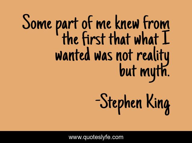 This page presents the quote "Some part of me knew from the first that what I wanted was not reality but myth.". Author of this quote is Stephen King. This quote is about writing-process, creativity, fiction, fantasy, truth, writing,.