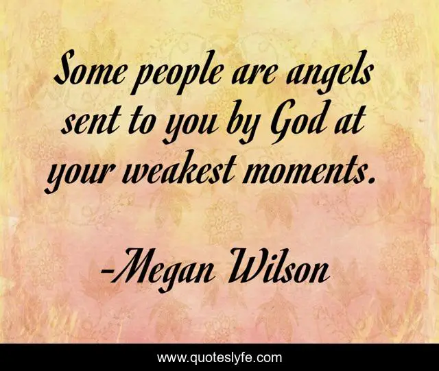 This page presents the quote "Some people are angels sent to you by God at your weakest moments.". Author of this quote is Megan Wilson. .