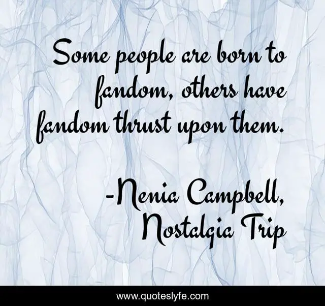 "Nenia Campbell, Nostalgia Trip Quotes." Quoteslyfe.com, 2025. Mon. 08 Dec. 2025. <https://www.quoteslyfe.com/quote/Some-people-are-born-to-fandom-others-251288>.