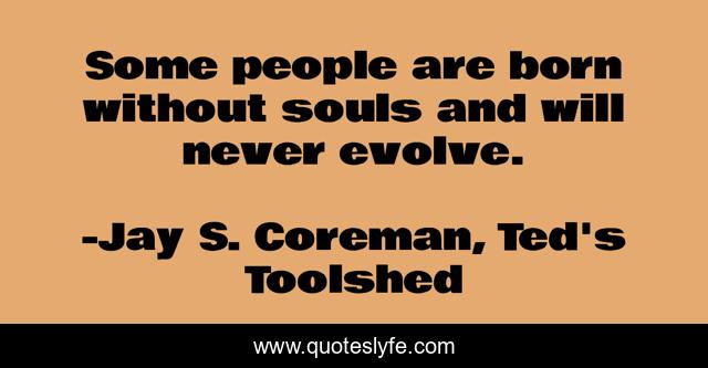 This page presents the quote "Some people are born without souls and will never evolve.". Author of this quote is Jay S. Coreman, Ted's Toolshed. .