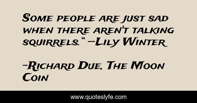 This page presents the quote "Some people are just sad when there aren't talking squirrels.” —Lily Winter". Author of this quote is Richard Due, The Moon Coin. This quote is about apple, indie, series, b-n, middle, nook, realm, ibookstore, young,.