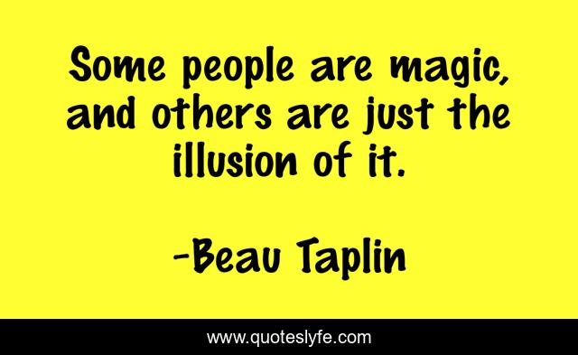 This page presents the quote "Some people are magic, and others are just the illusion of it.". Author of this quote is Beau Taplin. This quote is about magic, illusion, people,.