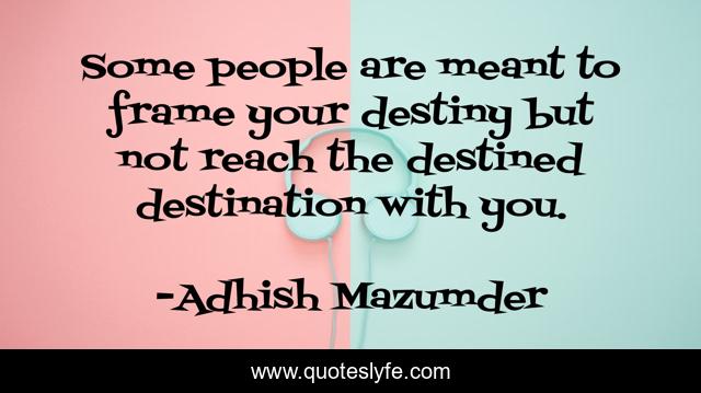 This page presents the quote "Some people are meant to frame your destiny but not reach the destined destination with you.". Author of this quote is Adhish Mazumder. This quote is about lessons, separation, life, pain, destiny, people, destination, hurt, breakups,.