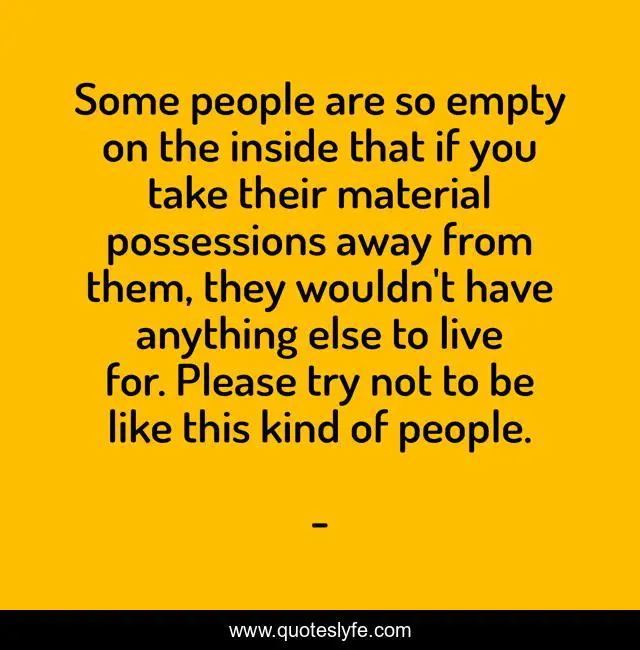 This page presents the quote "Some people are so empty on the inside that if you take their material possessions away from them, they wouldn't have anything else to live for. Please try not to be like this kind of people.". Author of this quote is . This quote is about edmond-mbiaka, being-empty-on-the-inside,.