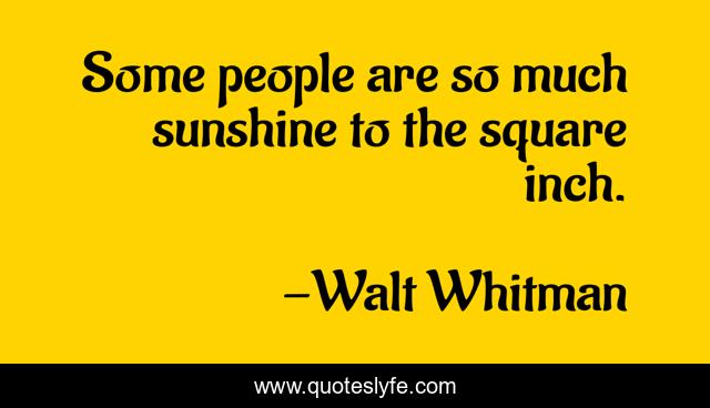 This page presents the quote "Some people are so much sunshine to the square inch.". Author of this quote is Walt Whitman. This quote is about sunshine, happiness,.