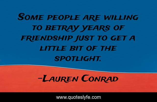 This page presents the quote "Some people are willing to betray years of friendship just to get a little bit of the spotlight.". Author of this quote is Lauren Conrad. This quote is about little, people, years,.