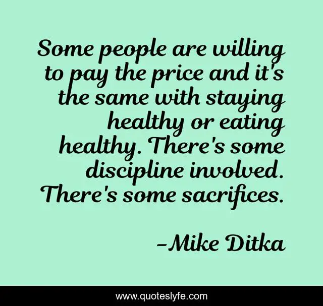 This page presents the quote "Some people are willing to pay the price and it's the same with staying healthy or eating healthy. There's some discipline involved. There's some sacrifices.". Author of this quote is Mike Ditka. This quote is about discipline, healthy, people,.