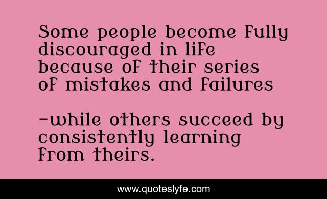 This page presents the quote "Some people become fully discouraged in life because of their series of mistakes and failures". Author of this quote is while others succeed by consistently learning from theirs.. .