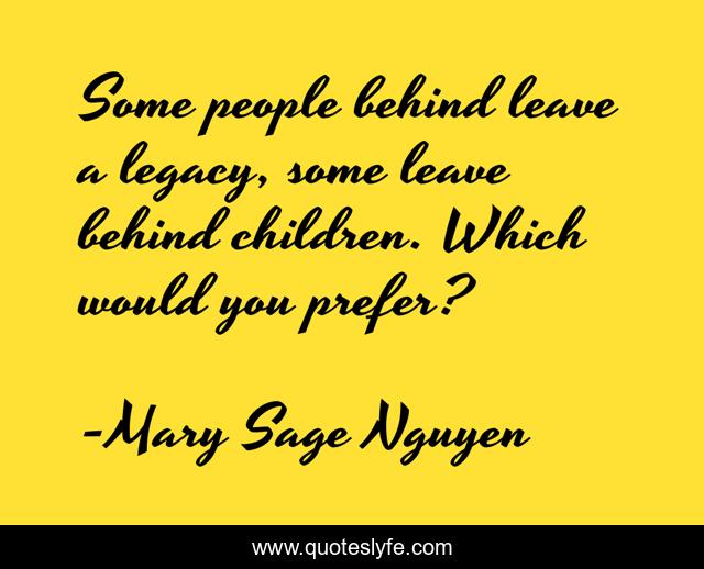This page presents the quote "Some people behind leave a legacy, some leave behind children. Which would you prefer?". Author of this quote is Mary Sage Nguyen. This quote is about legacy, children,.