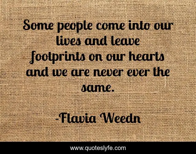 This page presents the quote "Some people come into our lives and leave footprints on our hearts and we are never ever the same.". Author of this quote is Flavia Weedn. .