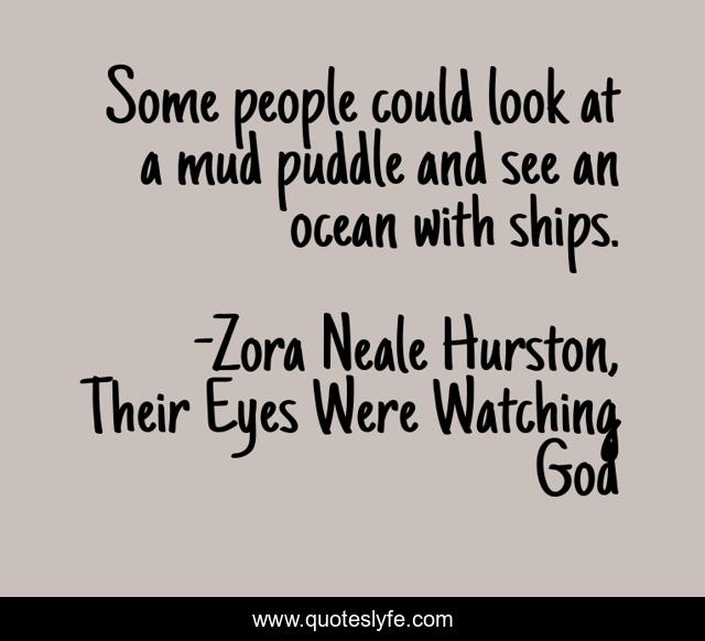 This page presents the quote "Some people could look at a mud puddle and see an ocean with ships.". Author of this quote is Zora Neale Hurston, Their Eyes Were Watching God. This quote is about enthusiasm, classics, inspirational,.