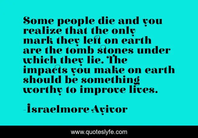 Some people die and you realize that the only mark they left on earth are the tomb stones under which they lie. The impacts you make on earth should be something worthy to improve lives.
