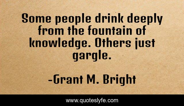 This page presents the quote "Some people drink deeply from the fountain of knowledge. Others just gargle.". Author of this quote is Grant M. Bright. .