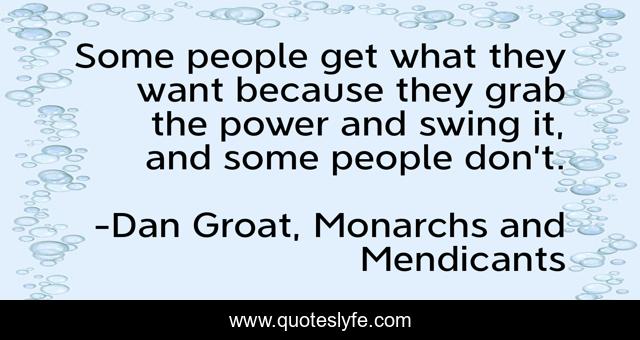 This page presents the quote "Some people get what they want because they grab the power and swing it, and some people don’t.". Author of this quote is Dan Groat, Monarchs and Mendicants. This quote is about power, success, powerful, weak, succeed, weakness,.