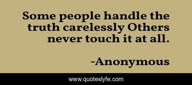 This page presents the quote "Some people handle the truth carelessly Others never touch it at all.". Author of this quote is Anonymous. .
