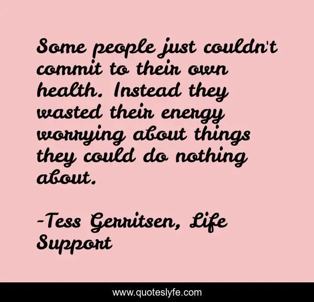 This page presents the quote "Some people just couldn't commit to their own health. Instead they wasted their energy worrying about things they could do nothing about.". Author of this quote is Tess Gerritsen, Life Support. .