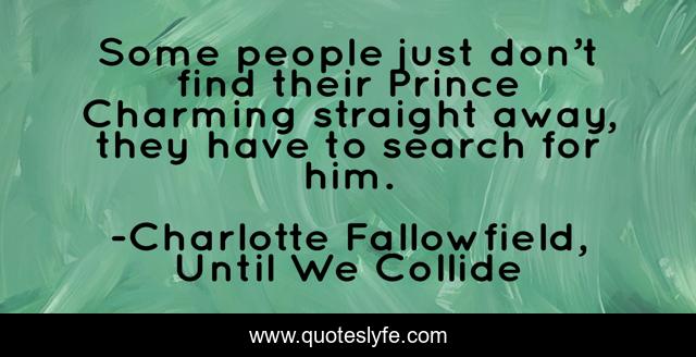 This page presents the quote "Some people just don’t find their Prince Charming straight away, they have to search for him.". Author of this quote is Charlotte Fallowfield, Until We Collide. This quote is about humour, chick-lit, contemporary, british, romance, romantic-comedy,.