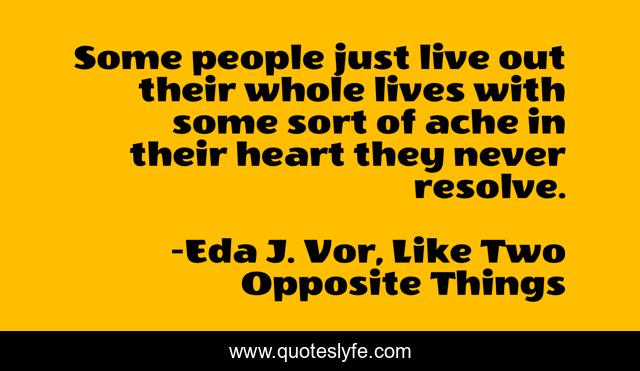 This page presents the quote "Some people just live out their whole lives with some sort of ache in their heart they never resolve.". Author of this quote is Eda J. Vor, Like Two Opposite Things. This quote is about ennui, mental-health, heart-ache, mental-health-awareness,.