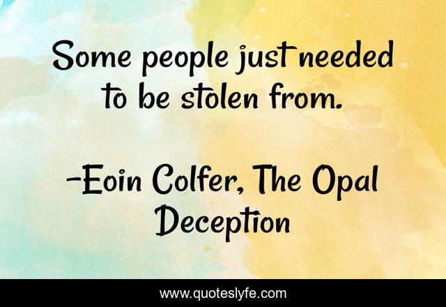 "Eoin Colfer, The Opal Deception Quotes." Quoteslyfe.com, 2025. Fri. 05 Dec. 2025. <https://www.quoteslyfe.com/quote/Some-people-just-needed-to-be-stolen-230928>.