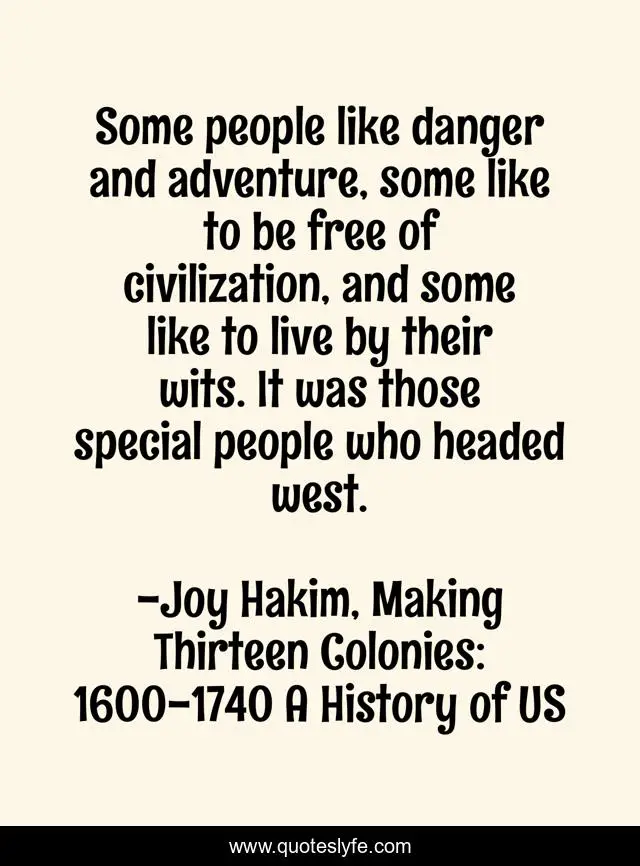 "Joy Hakim, Making Thirteen Colonies: 1600-1740 A History of US Quotes." Quoteslyfe.com, 2025. Fri. 05 Dec. 2025. <https://www.quoteslyfe.com/quote/Some-people-like-danger-and-adventure-some-70288>.