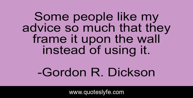This page presents the quote "Some people like my advice so much that they frame it upon the wall instead of using it.". Author of this quote is Gordon R. Dickson. This quote is about advice, frame-on-the-wall, people,.