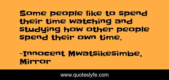 This page presents the quote "Some people like to spend their time watching and studying how other people spend their own time.". Author of this quote is Innocent Mwatsikesimbe, Mirror. This quote is about life, self-improvement, time,.