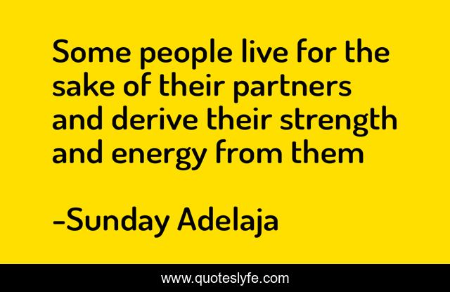 This page presents the quote "Some people live for the sake of their partners and derive their strength and energy from them". Author of this quote is Sunday Adelaja. This quote is about partners, energy, strength, marriage, family,.