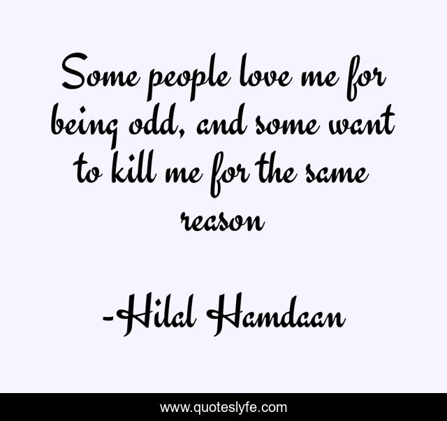 This page presents the quote "Some people love me for being odd, and some want to kill me for the same reason". Author of this quote is Hilal Hamdaan. This quote is about odd, individuality, love, affection, hate,.