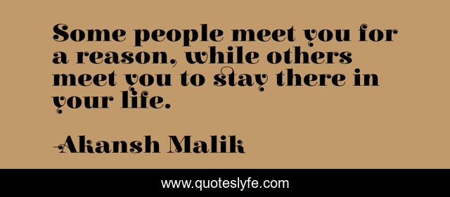 This page presents the quote "Some people meet you for a reason, while others meet you to stay there in your life.". Author of this quote is Akansh Malik. This quote is about life, people, meeting, reason, stay,.