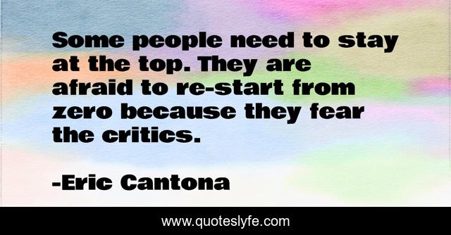 This page presents the quote "Some people need to stay at the top. They are afraid to re-start from zero because they fear the critics.". Author of this quote is Eric Cantona. This quote is about need, some people, people,.