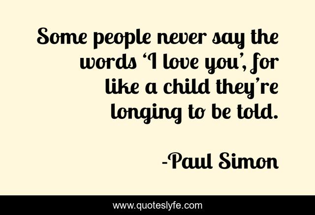 This page presents the quote "Some people never say the words ‘I love you’, for like a child they’re longing to be told.". Author of this quote is Paul Simon. This quote is about longing, love, affection,.
