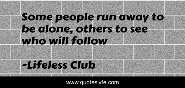 This page presents the quote "Some people run away to be alone, others to see who will follow". Author of this quote is Lifeless Club. .