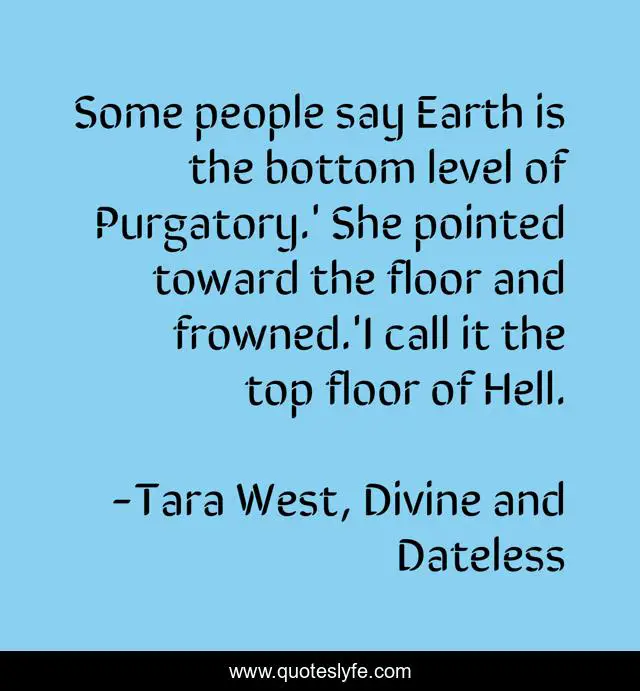 This page presents the quote "Some people say Earth is the bottom level of Purgatory.' She pointed toward the floor and frowned.'I call it the top floor of Hell.". Author of this quote is Tara West, Divine and Dateless. This quote is about contemporary-comedy, paranormal-romance,.