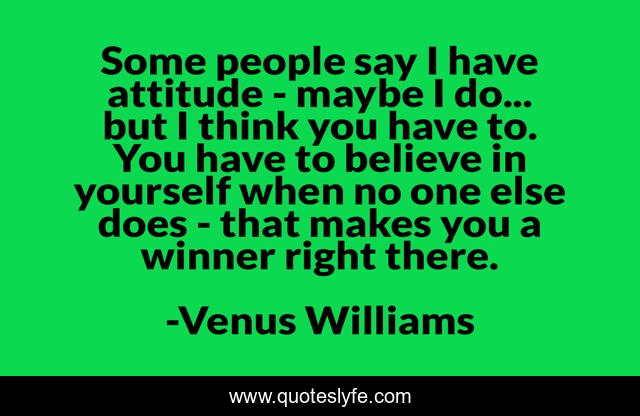 This page presents the quote "Some people say I have attitude - maybe I do... but I think you have to. You have to believe in yourself when no one else does - that makes you a winner right there.". Author of this quote is Venus Williams. .