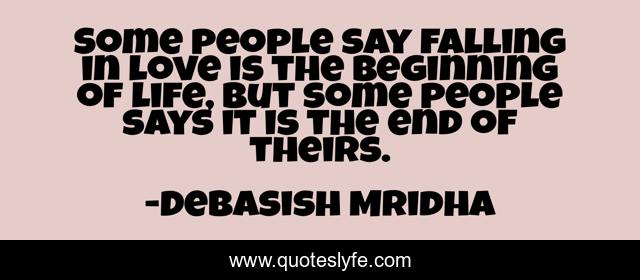 This page presents the quote "Some people say falling in love is the beginning of life, but some people says it is the end of theirs.". Author of this quote is Debasish Mridha. This quote is about life, love, knowledge, inspirational, intelligence, philosophy, wisdom, quotes, affection,.