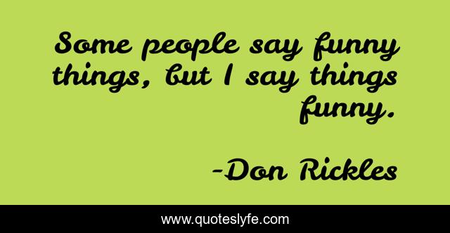 This page presents the quote "Some people say funny things, but I say things funny.". Author of this quote is Don Rickles. This quote is about people say, people,.