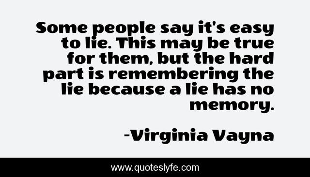 This page presents the quote "Some people say it's easy to lie. This may be true for them, but the hard part is remembering the lie because a lie has no memory.". Author of this quote is Virginia Vayna. This quote is about lies, beguile, memory,.