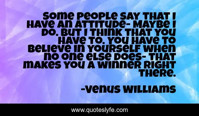 This page presents the quote "Some people say that I have an attitude- Maybe I do. But I think that you have to. You have to believe in yourself when no one else does- that makes you a winner right there.". Author of this quote is Venus Williams. .