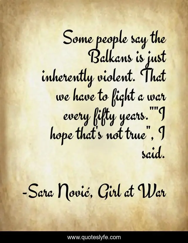 This page presents the quote "Some people say the Balkans is just inherently violent. That we have to fight a war every fifty years.""I hope that's not true", I said.". Author of this quote is Sara Nović, Girl at War. .