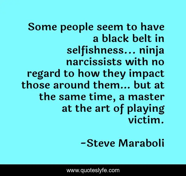 This page presents the quote "Some people seem to have a black belt in selfishness... ninja narcissists with no regard to how they impact those around them… but at the same time, a master at the art of playing victim.". Author of this quote is Steve Maraboli. This quote is about selfishness, victim,.