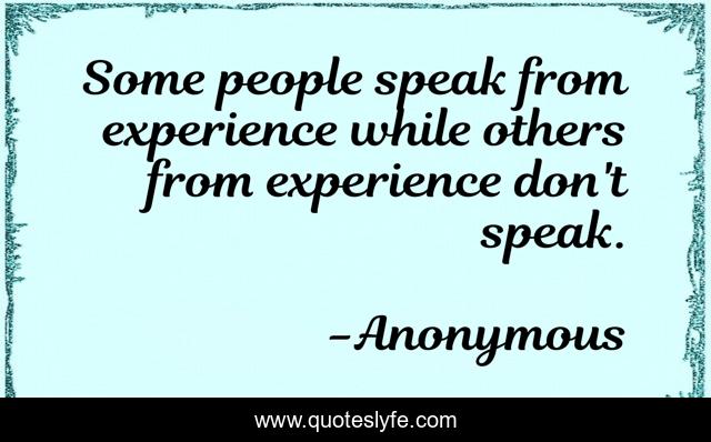 "Anonymous Quotes." Quoteslyfe.com, 2025. Sun. 07 Dec. 2025. <https://www.quoteslyfe.com/quote/Some-people-speak-from-experience-while-others-277358>.
