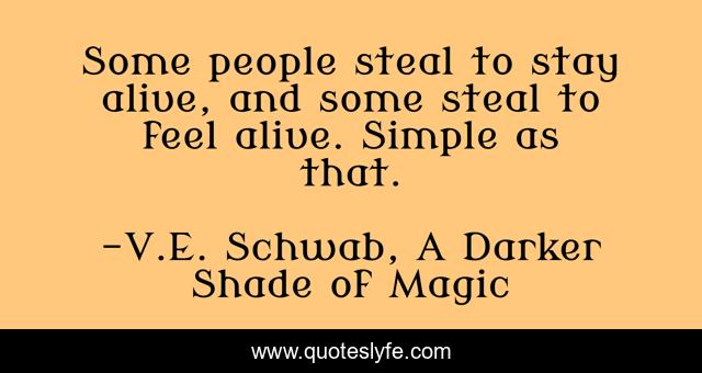 This page presents the quote "Some people steal to stay alive, and some steal to feel alive. Simple as that.". Author of this quote is V.E. Schwab, A Darker Shade of Magic. .