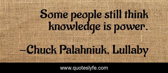 "Chuck Palahniuk, Lullaby Quotes." Quoteslyfe.com, 2025. Fri. 05 Dec. 2025. <https://www.quoteslyfe.com/quote/Some-people-still-think-knowledge-is-power-30517>.